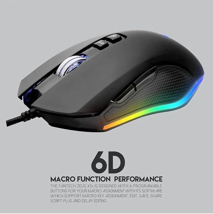 Generic - ماوس ألعاب مع ماوس باد من فانتك - 6 أزرار قابلة للبرمجة – دقة 4800 نقطة في البوصة - إضاءة بألوان الفضاء اللوني RGB بـ 11 وضعية - تصميم متعدد الاستخدامات - موديل X5s ZEUS