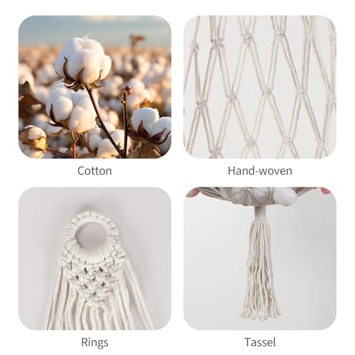 - تصميم على شكل ماء، منسوج يدويًا: الأراجيح الشبكية الخاصة بنا مصنوعة من مادة حبل قطني صديقة للبيئة ليس من السهل كسرها ويمكن استخدامها لفترة طويلة دون تشوه. مصنوعة يدويًا على يد حرفيين مهرة، كل أرجوحة هي هدية فريدة. من نمط الشرابة على شكل قلب في الأعلى إلى الشرابة البوهيمية في الأسفل، تجعل الخطوط العريضة الواضحة والناعمة كل التفاصيل لافتة للنظر. مناسبة للديكور في الغرف مثل غرف الألعاب ودور الحضانة