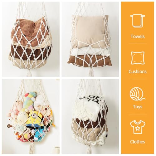 Aufee - شبكة تخزين حيوانات محشوة بارتفاع 6.5 قدم، شبكة معلقة على الزوايا، لعبة مكرامية مخملية معلقة على الحائط، خطاف واحد، منظمات وحامل العاب للتخزين لغرفة الاطفال وديكور غرفة النوم (كريمي)