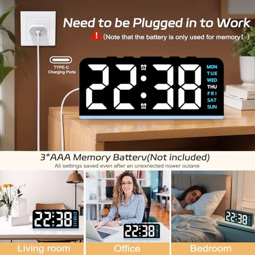 - 【وظيفة الذاكرة】تتميز ساعة منبه LED الرقمية هذه بوظيفة الذاكرة. ما عليك سوى توفير 3 بطاريات ايه ايه ايه (غير متضمنة في المنتج)، وعند إعادة توصيل الطاقة بعد انقطاع الطاقة، ستتذكر الإعدادات السابقة دون إعادة الضبط، وتجنب مشكلة إعادة الضبط بشكل فعال بعد انقطاع الطاقة.