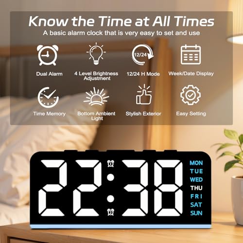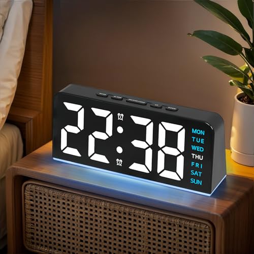 Necomi - ساعة منبه رقمية بشاشة 6.8 بوصة مع إضاءة ليد محيطة تعرض اليوم/التاريخ/درجة الحرارة/12/24 ساعة/منبه مزدوج/غفوة، ساعة طاولة مكتب بجانب السرير مناسبة للمكتب وغرفة النوم وللأطفال وكبار السن من نيكومي
