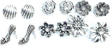Generic - 6 حلقان فضة عتيقة اشكال مختلفة - حلق حريمي ورد - 07، فضي، للنساء