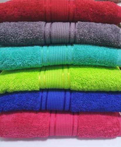 Generic - 6 من بشكير الحمام - 100% قطن - امتصاص عالي للماء - مقاس 70*140 - الوان زاهية