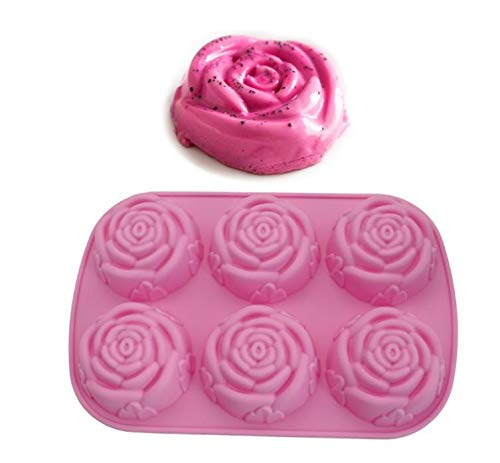 Other - 6 تجاويف سيليكون مختلطة اشكال الزهور قالب صابون روز دعم كب كيك الشوكولاته والمافن والبودينغ مصنوعة يدويا خفيفة ومرنة وقوية
