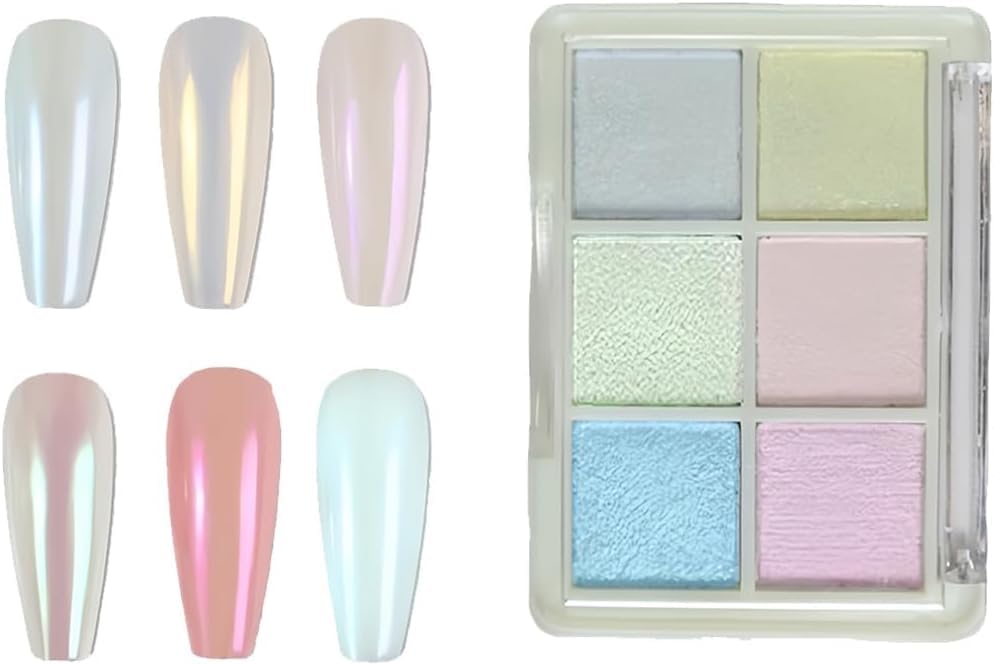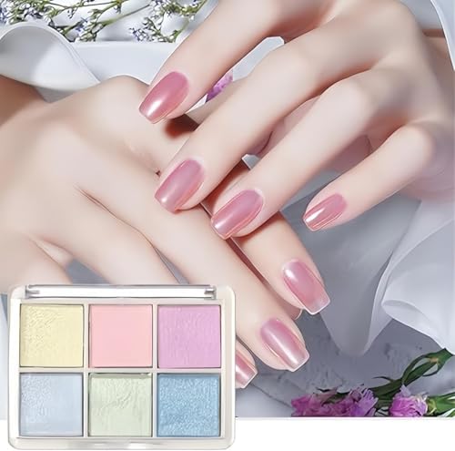 Generic - بودرة أظافر لؤلؤية بتأثير الكروم بستة ألوان، جليتر فن الأظافر بتأثير مراية عاكس، بودرة بتأثير اللؤلؤ لأظافر بنمط الدونات، زينة أظافر