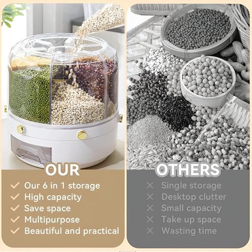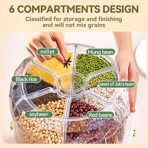 Generic - عبوة طعام مكونة من 6 أقسام - منظم حبوب دوار 360 درجة لتخزين الطعام الجاف، دلو أرز لسطح الطاولة، موزع حبوب المؤن