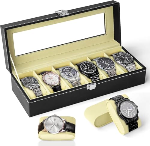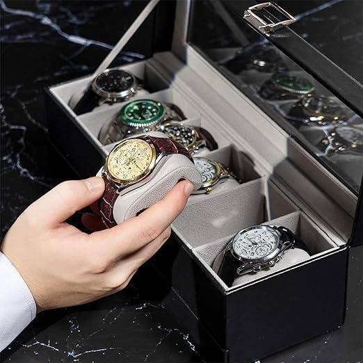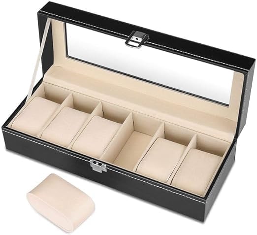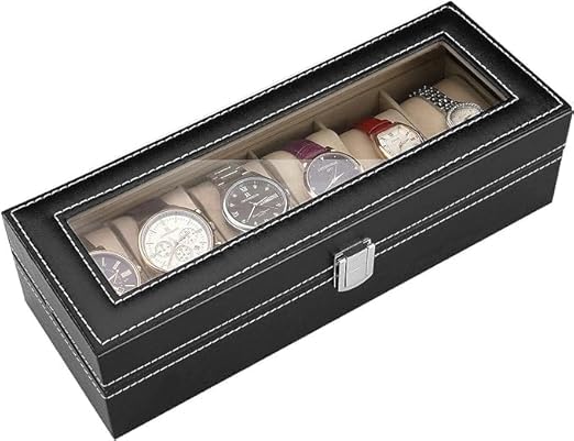 - علبة حفظ ساعات أنيقة تضم 6 خانات مبطنة لحماية تامة