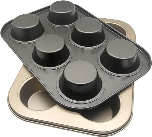 AREXOL - صينية كب كيك 6 عين غير لاصقة معدنية ثقيلة للحصول على كب كيك هش ونتائج ذهبية متساوية لكل الاستخدامات