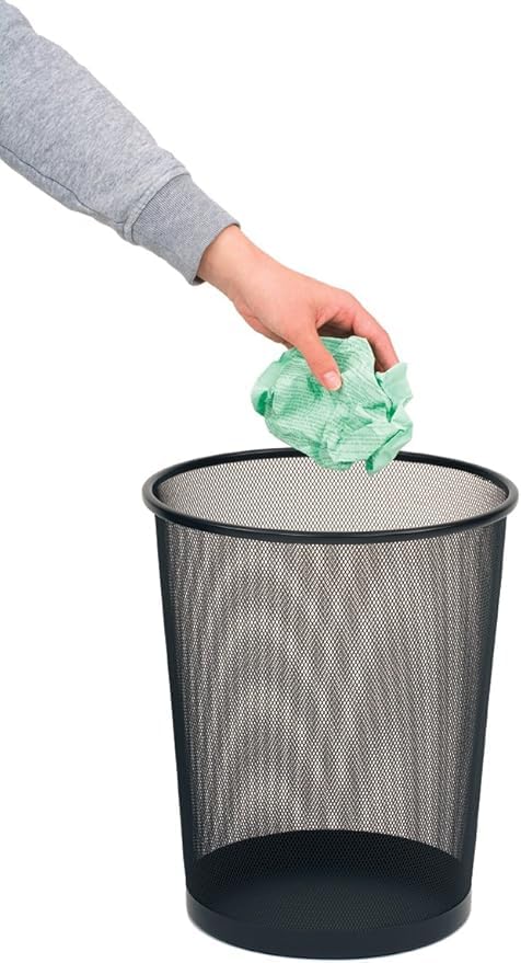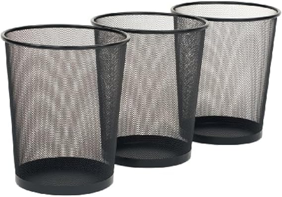 Generic - سلة مهملات شبكية دائرية الشكل لاعادة التدوير سعة 6 جالون مقاس (القطر العلوي 12 بوصة × ارتفاع 14 3 قطع لون اسود معدن