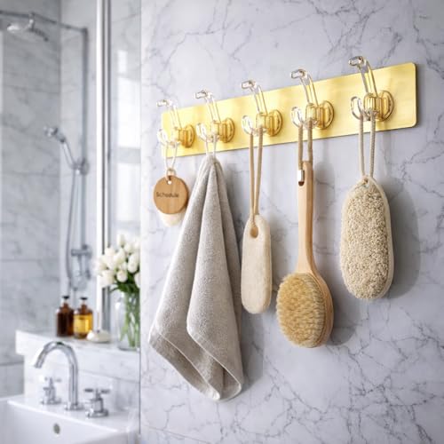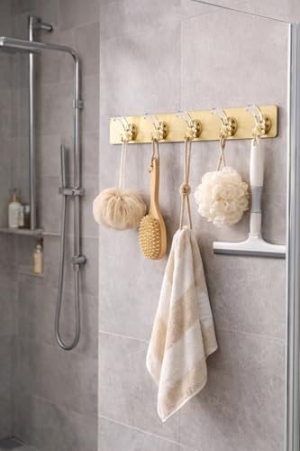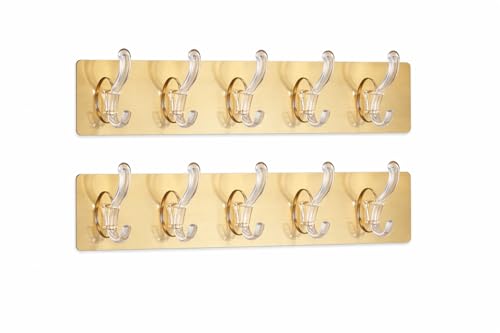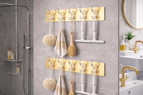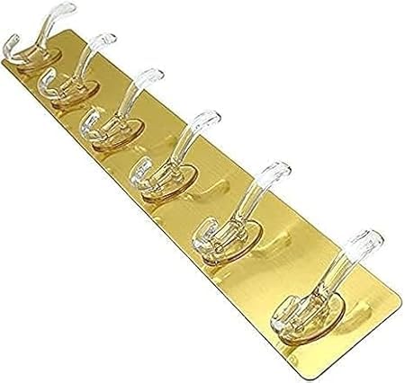 Generic - شماعة سيليكون مرنة بـ6 خطافات، رف خطاف حائط ذاتي اللصق للحمام والمطبخ، منظم بدون حفر للجدران السيراميك والناعمة، 16 × 8 سم، (2 قطعة، ذهبي)