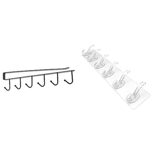 Generic - حامل أكواب منظم لدولاب المطبخ قابل للتعليق تحت الرف ب6 خطافات، متعدد الألوان + 6 خطافات من سيليكون مرن 40×8 سم