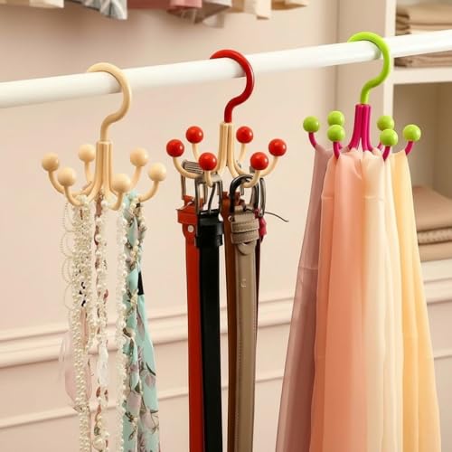 - ✅【خطافات دوّارة】تحتوي هذه الشماعة على 6 خطافات دوّارة بزاوية 360 درجة، مما يتيح تعليق الطرح والملابس الداخلية والإكسسوارات الصغيرة بطريقة منظمة وسهلة الوصول إليها دون تشابك أو ازدحام، مما يجعل عملية اختيار القطع اليومية أكثر سلاسة وسهولة. 🔄