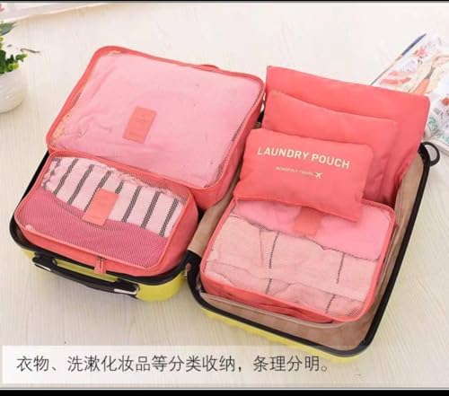 Generic - مجموعة اكياس تخزين الملابس 6 في 1 لتنظيم شنط السفر مع كيس غسيل للملابس الداخلية ولتنظيم اثناء متعددة الالوان بوليستر H