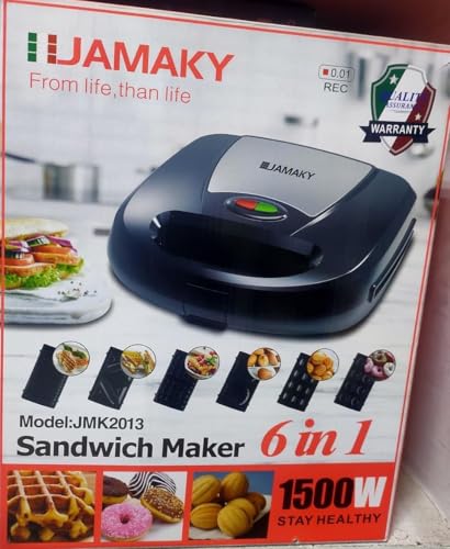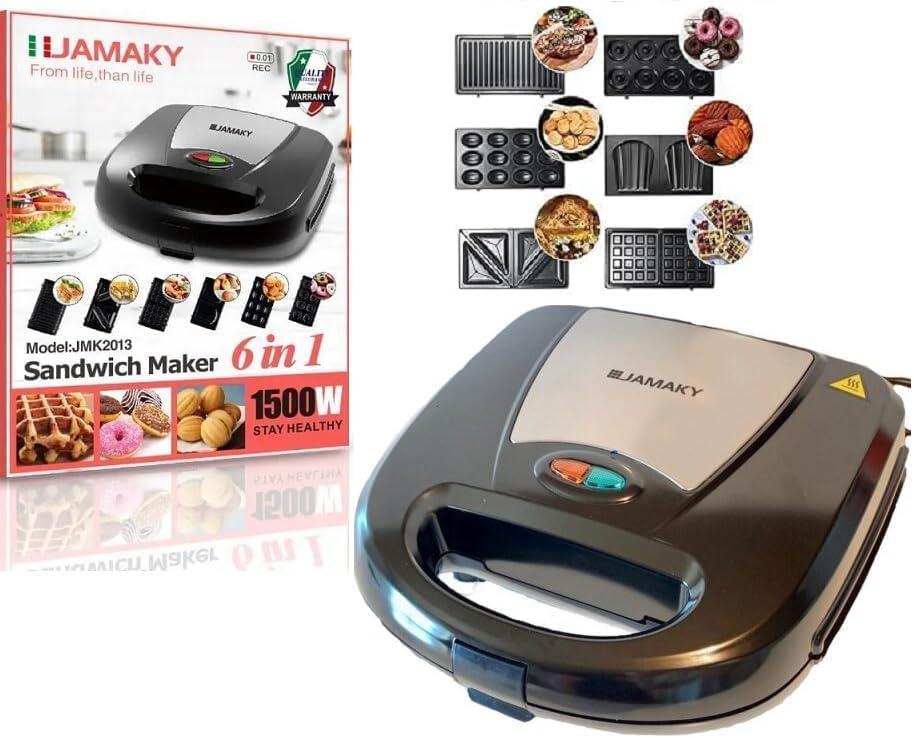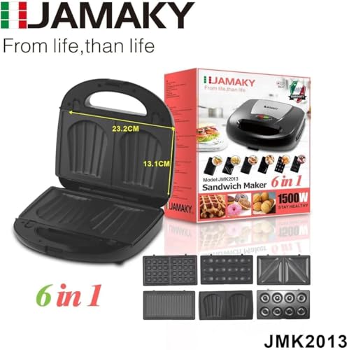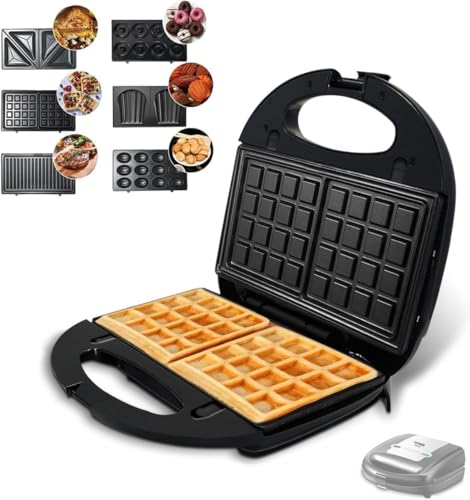 Generic - ماكينة صنع الساندويتشات والوافل 6 في 1 متوافق مع جماكى بقدرة 1500 وات ماكينة بطلاء مانع للالتصاق، مشبك تثبيت، سهل الاستخدام والتنظيف متعددالاستخدامات للوافل والساندويتشات والدونت والجوزية-