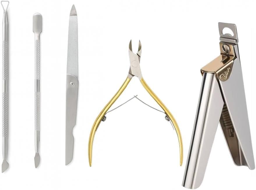 Nutrascience - مجموعة العناية بالاظافر 6 في 1 من الستانلس ستيل - قصافة اظافر وقصافة الزوائد اللحمية ومبرد اظافر ودفع الزوائد اللحمية مزدوجة الاطراف ومقشرة الزوائد اللحمية - ادوات احترافية للمانيكير والباديكير