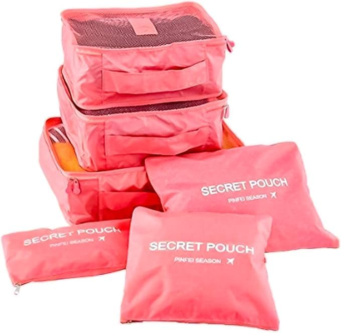 Generic - منظم شنط السفر والدولاب 6×1 – لترتيب مثالي وسفر منظم F (بينك)