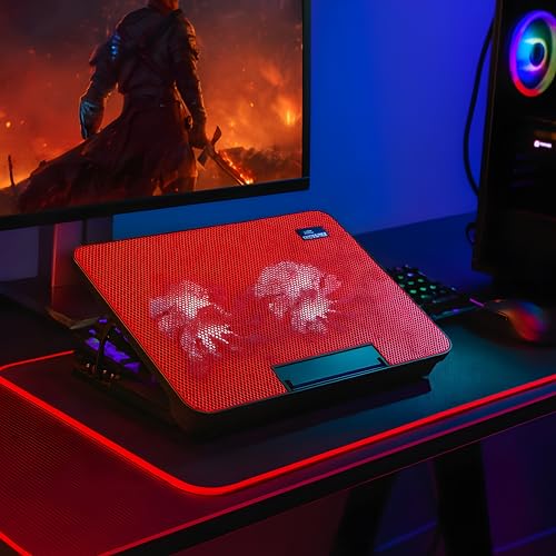 Generic - مروحة تبريد لابتوب بـ6 مستويات لتعديل الارتفاع - اضاءة LED زرقاء - دعم حتى 17 بوصة - منفذين USB - جاما GT-99