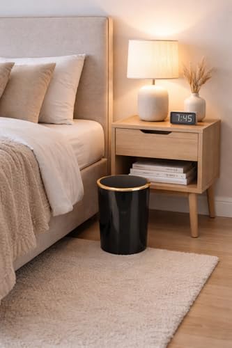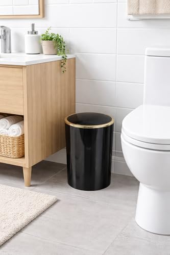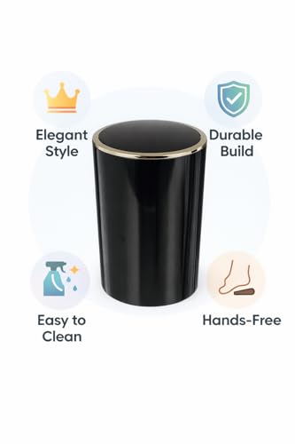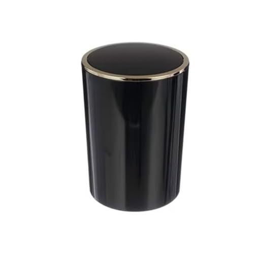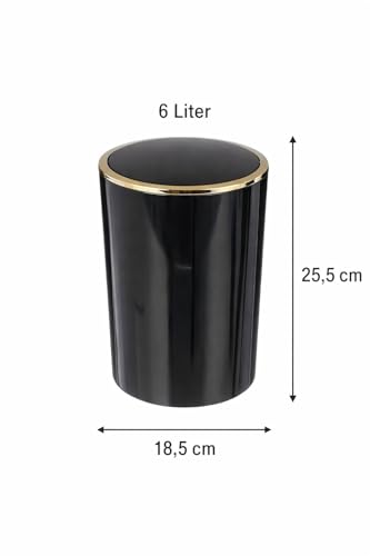 Generic - سلة مهملات بغطاء متارجح من الاكريليك سعة 6 لتر باطار ذهبي للحمام وغرفة النوم والمكتب والمطبخ - سلة مهملات صغيرة داخلية، 25.5 × 18.5 سم (اسود)