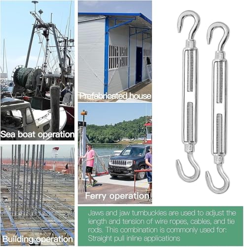 Generic - خطافات شد من الفولاذ المقاوم للصدأ 304، مشابك ربط M10 مع خطافات مزدوجة للكابلات والحبال والأسلاك، 6 قطع
