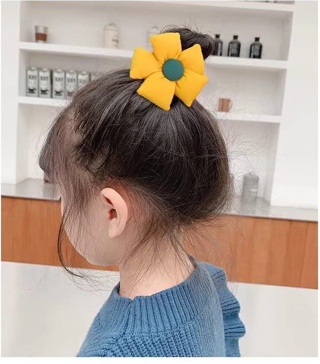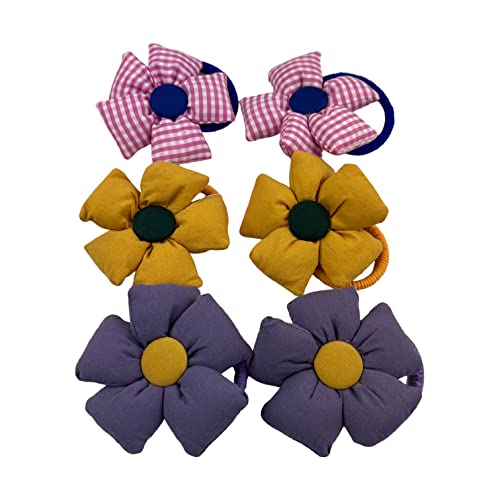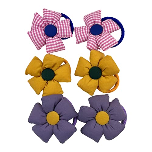 Generic - 6 عبوات 3 انش للبنات ارتداء ذيل حصان قماش دائري لتزيين الشعر على شكل زهور وربطة مطاطية وزهرة عباد الشمس رباط مطاطي متين اكسسوارات للشعر. (6 عبوات بينك/اصفر/بنفسجي)
