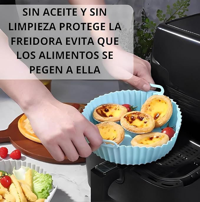 - احمي القلاية الهوائية: تعمل الأوعية المصنوعة من السيليكون كطبقة واقية، مما يمنع الشحوم والزيوت وجزيئات الطعام من التراكم في سلة القلاية الهوائية، ويجعل تنظيف القلاية الهوائية خاصتك أسرع وأسهل.