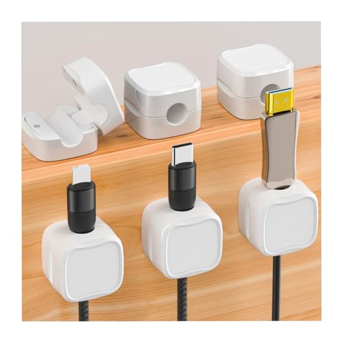 Pecbase - مشبك كابلات مغناطيسي، منظم حامل أسلاك لتنظيم كابل شاحن USB للموبايل للمنزل والمكتب والسيارة والمكتب والطاولة الجانبية، 6 قطع، أبيض (71-03)