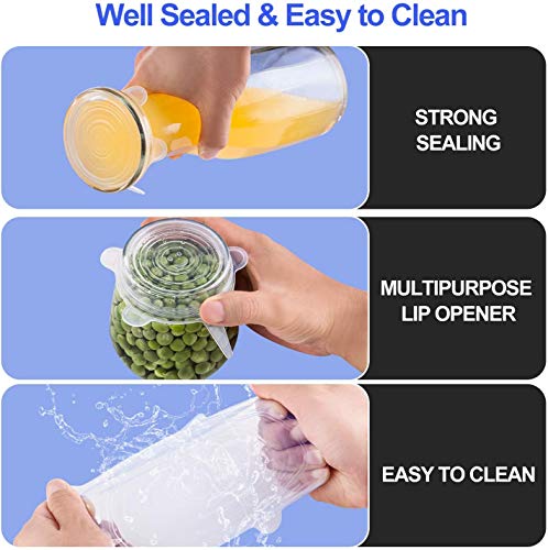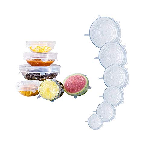 - مجموعة أغطية مطاطية من السيليكون تتضمن 6 أغطية سيليكون شفافة بمقاسات مختلفة. بفضل المواد القابلة للتمدد، ستناسب أغطية الطعام معظم الأوعية والأواني والحاويات والأكواب والعلب والبرطمانات بسهولة استخدامها، ويمكنك حتى استخدامها لتغطية البطيخ أو البطيخ.