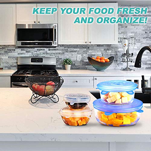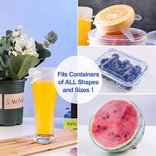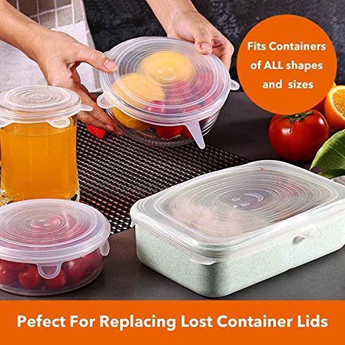 Starks Wish - مجموعة اغطية اوعية تخزين الطعام، اغطية مطاطية من السيليكون من فئة ال اف جي بي القياسية قابلة للتمدد لتناسب مختلف اشكال اوعية الطعام والصحون، امنة للتنظيف في غسالة الصحون والميكروويف، نمط شفاف - 6 قطع