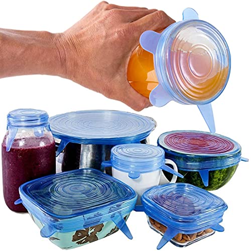 Spaceshoop - مجموعة من 6 قطع اغطية سيليكون مانعة للانسكاب - اغطية مصنوعة من سيليكون معتمد عالميا بنظام الشفط والالتصاق للبولات والطاسات - اغطية لطاسات المطبخ - ادوات منع الانكساب