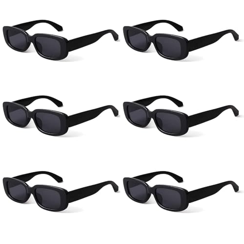 Generic - نظارة شمس للجنسين، عصرية بتصميم مستطيل وإطار مربع عتيق للحماية من الاشعة فوق البنفسجية، لون أسود 6 قطعة