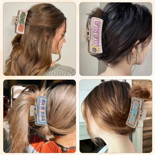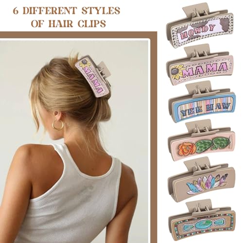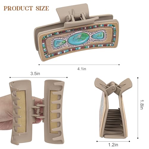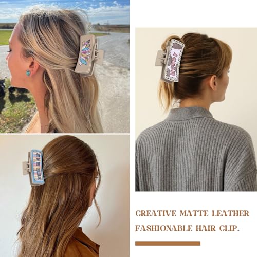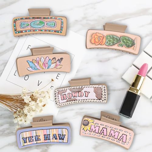 Kaiersi - مشابك شعر مخلبية من الجلد الغربي للنساء والفتيات مقاس 4 انش، مشابك شعر كبيرة غير لامعة تثبت بفك قوي على شكل صبار بوهو للشعر الطويل والمجعد الكثيف، عبوة من 6 قطع