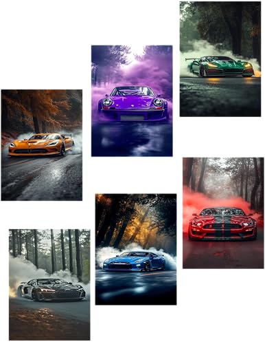 Generic - 6 لوحات 30 × 20 بوستر مطلي بدون اطار صورة لسيارات نيسان GT-R (R35) - اودي R8 - فورد موستانج شيلبي GT500 - كورفيت C8 Z06 - بورش 911 - دودج فايبر ACR