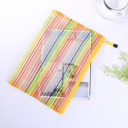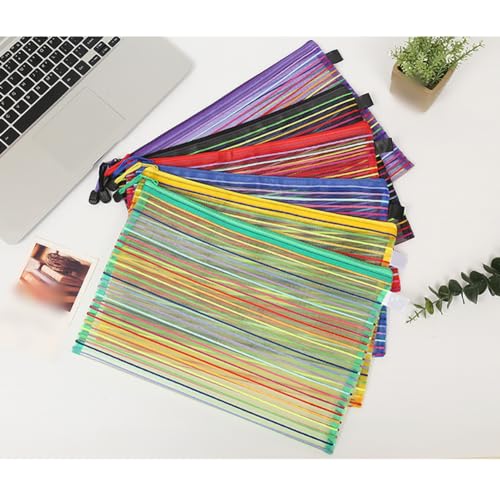 UUYYEO - محافظ بلاستيكية بسوستة مقاس A4، أكياس شبكية بألوان قوس قزح مع محافظ بسوست، حافظة مستندات، حوامل تخزين ملفات قرطاسية ملونة من 6 قطع