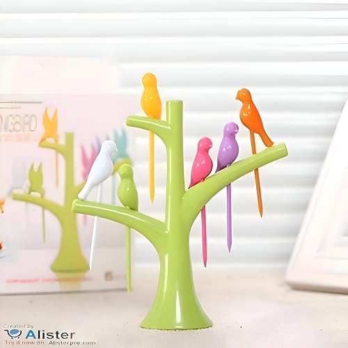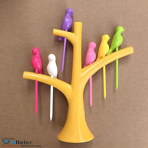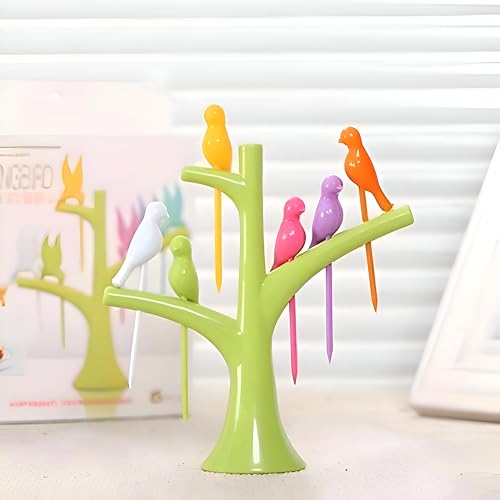 - 🏅 **تصميم فريد:**- يتضمن الطقم 6 شوك فواكه على شكل طائر وحامل شجرة- لطيف للغاية وممتع، يحول أي مناسبة إلى حدث غريب الأطوار