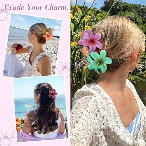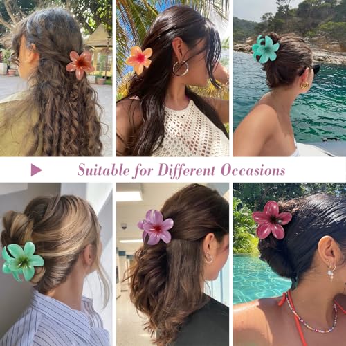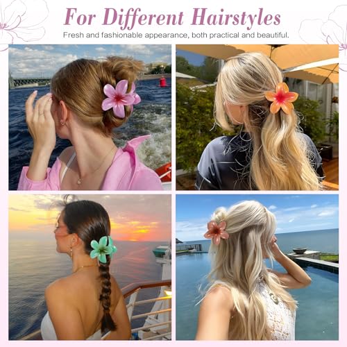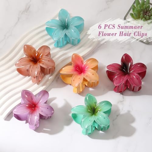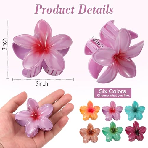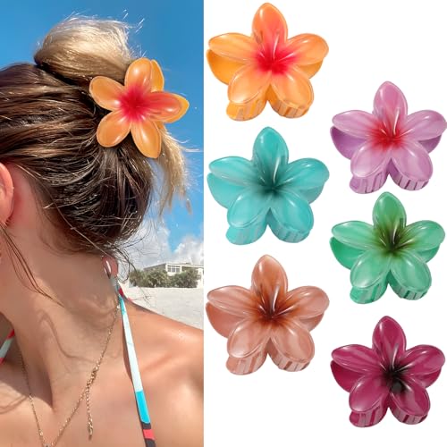 Unbednigt - 6 قطع من مشابك الشعر على شكل زهرة، مشابك مخلب هاواي للنساء، مشابك شعر كبيرة لطيفة للشعر الكثيف والرفيع، اكسسوارات شعر بلوميريا للبنات هدايا العطلات