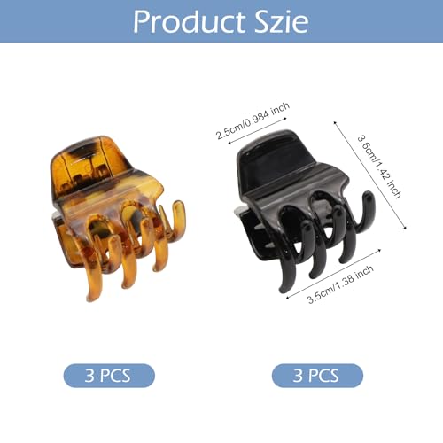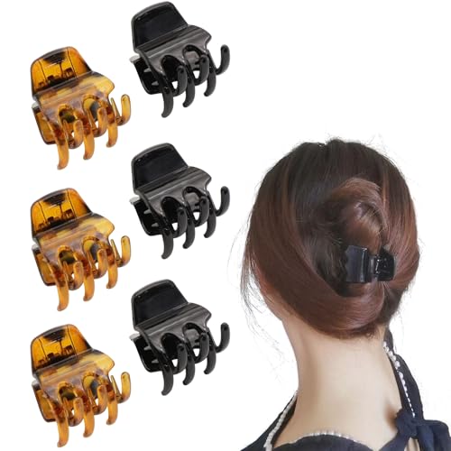 lokxmve - 6 قطع من مشابك الشعر، مشابك مخلبية صغيرة غير قابلة للانزلاق لاكسسوار الشعر الجميلة للنساء والفتيات للشعر المستقيم والمموج والمجعد (أسود وبني)
