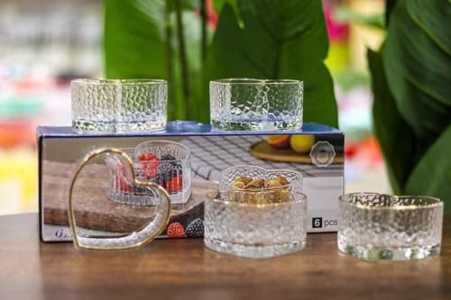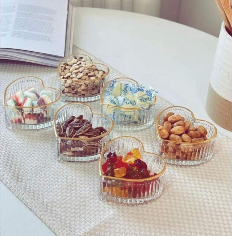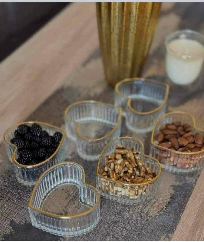 Generic - أطباق تقديم زجاجية شفافة بشكل قلب مع حواف ذهبية، 6 قطع، للمكسرات والحلويات والوجبات الخفيفة، تصميم رومانسي فاخر مناسبه للعياد ورمضان