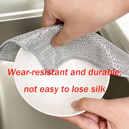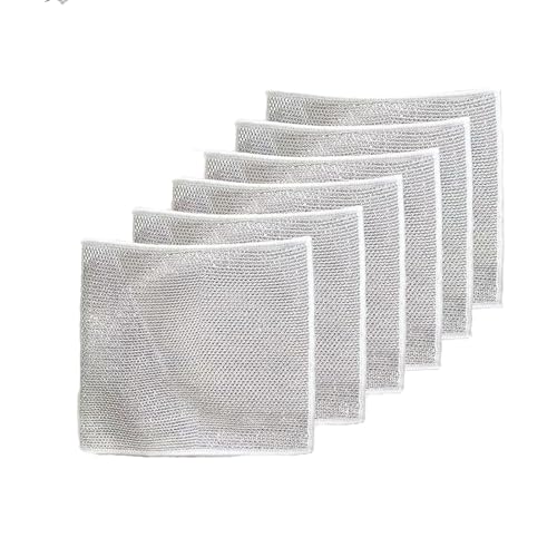 Dakexiong - 6 قطع من قماش تنظيف الاسلاك متعددة الاغراض، قطع تنظيف سلكية لغسل الاطباق الرطبة والجافة، قماش غير قابل للخدش للاطباق والمغاسل والطاولات وأسطح الموقد (طبقة مزدوجة)