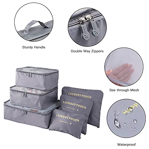 POOWO - مجموعة مكعبات التعبئة من 6 قطع لتنظيم حقائب السفر بسحاب للملابس الداخلية والجوارب وحقيبة تخزين شبكية مكعبة الامتعة وشنطة الاحذية ادوات الزينة رمادي ايه بي اس