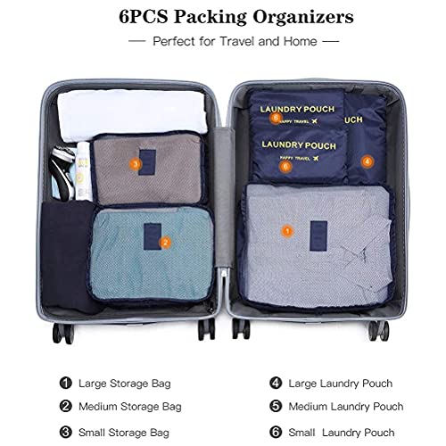 - مجموعة منظمات تعبئة للسفر من 6 قطع (3 مكعبات تعبئة بأحجام مختلفة، و3 حقائب مسطحة بأحجام مختلفة)