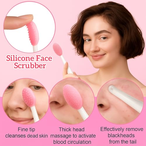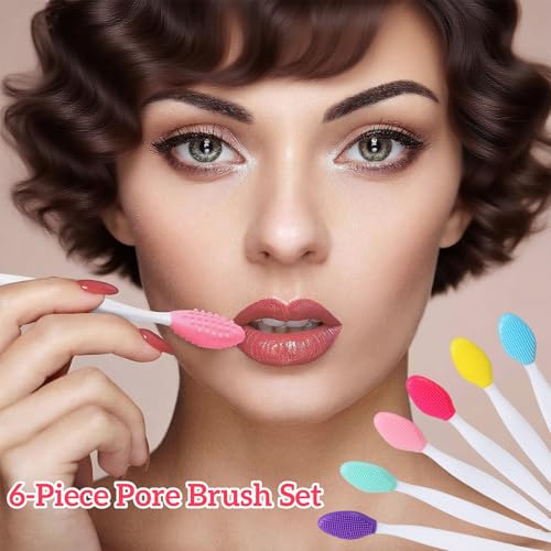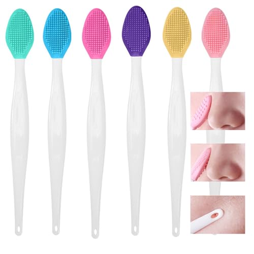 TYRKE - فرشاة تنظيف المسام 3 في 1 قابلة لاعادة الاستخدام من السيليكون لازالة الرؤوس السوداء وتنظيف المسام العميقة وتقشير الوجه، فرشاة تنظيف مزدوجة الجوانب للعناية بالشفاه وبشرة ناعمة من 6 قطع