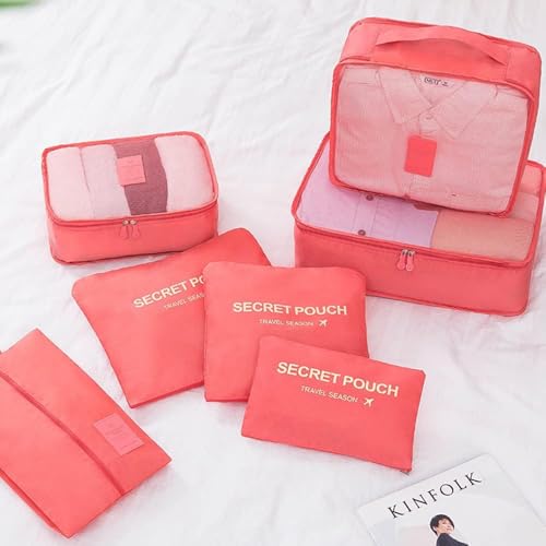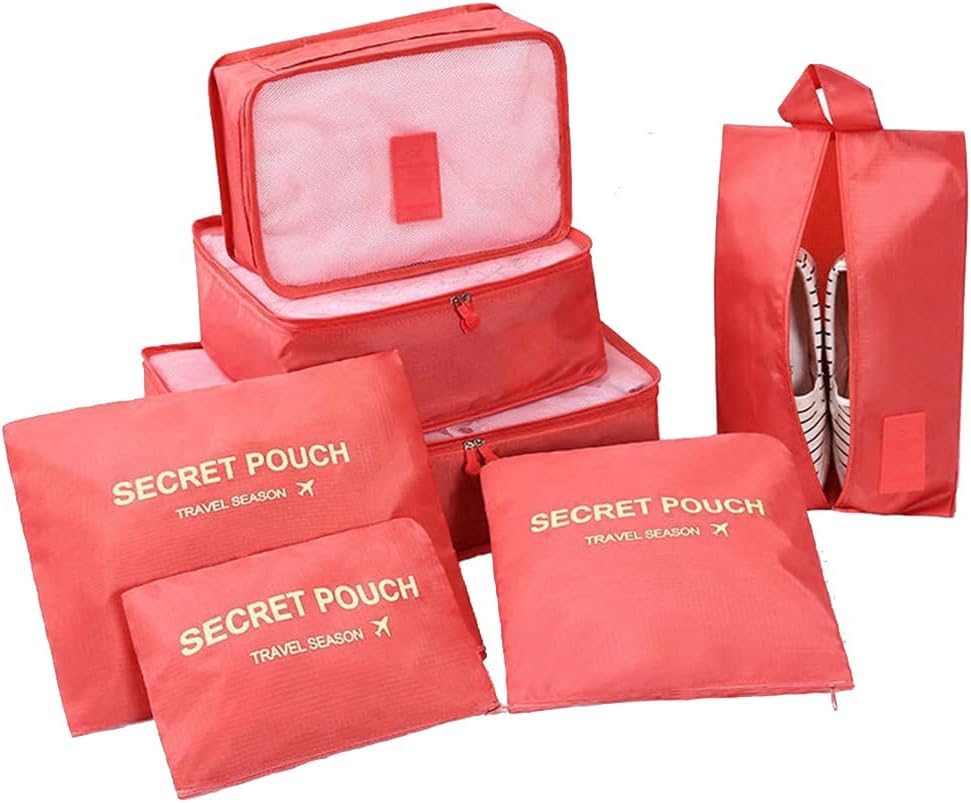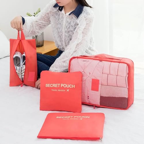 Generic - مجموعة شنط منظمة لشنطة السفر مكعبة الشكل متعددة الوظائف ومقاومة للماء للملابس والاحذية ومستحضرات التجميل من 6 قطع متعددة الالوان(المنزل الذكي) (احمر)