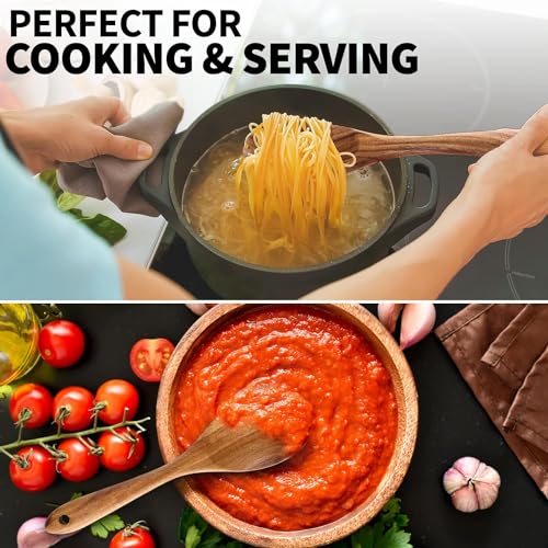 Dynamic Bazaar Inc - معالق خشبية للطبخ، أدوات تناول طعام اكاسيا بلمسة نهائية ناعمة، معالق للتقديم والطبخ غير لاصقة مصنوعة من الخشب، 6 قطع