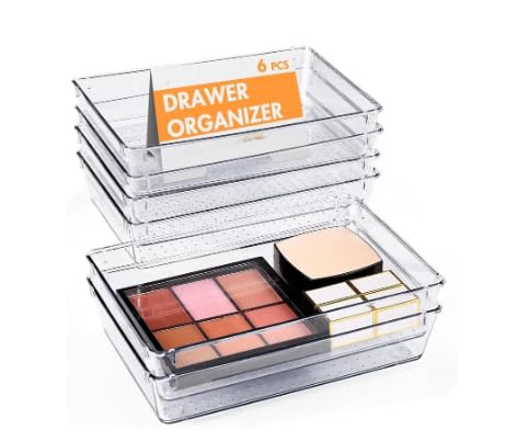 Generic - مجموعة منظمات أدراج اكريليك، صناديق تخزين شفافة للمكياج والمستلزمات المكتبية وأدوات تناول الطعام وغيرها، فواصل أدراج متينة قابلة للتكديس وغير قابلة للانزلاق (6 قطع)