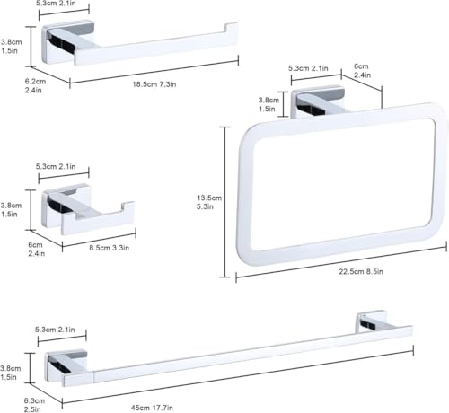 - قضيب مناشف 24 بوصة: مصمم لتعليق المناشف بسهولة وتنظيمها بشكل أنيق، مع طول مثالي يناسب جميع الأنواع.