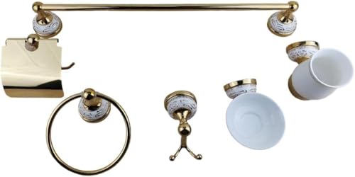 Generic - مجموعة قطع الحمام من 6 قطع - اكسسوارات ذهبي بقاعدة خزفية