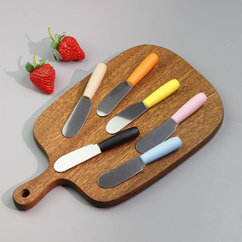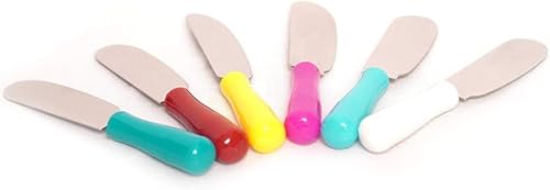 Generic - مجموعة ادوات توزيع الزبدة والجبن من 6 قطع - سكاكين مطبخ من الستانلس ستيل بشفرة مسطحة عريضة ومقابض ملونة لدهن الساندويتش والكريمة والجبن والمربى، متينة وسهلة التنظيف