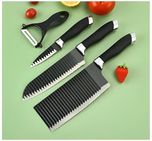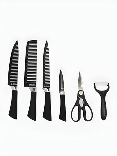 Generic - مجموعة سكاكين المطبخ الكاملة مكونة من 6 قطع: 3 سكاكين، ساطور، مقص مطبخ، ومقشرة للطهي المتنوع