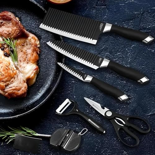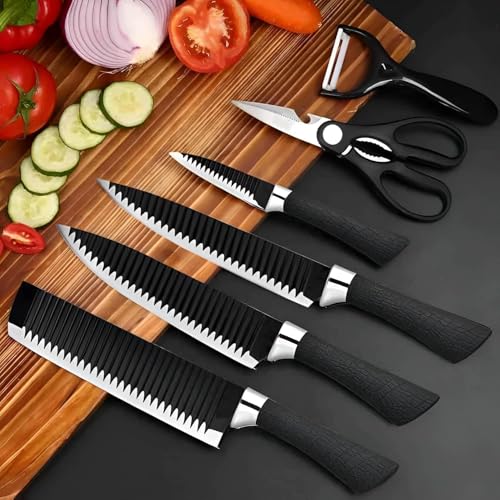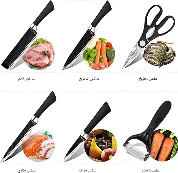 Generic - مجموعة سكاكين كاملة من 6 قطع، سكاكين حادة ومقص قوي ومقشر للتنظيف، مصممة للطهاة المحترفين والطهاة المنزليين لتعزيز أداء الطهي.