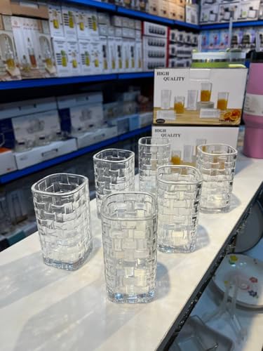 Generic - مجموعة اكواب شرب زجاجية كريستالية من 6 قطع، 240 مل فاخرة مستوردة للاستخدام اليومي والترفيه والحفلات وتقديم الهدايا - انيقة ومتينة (مجموعة من 6 قطع)